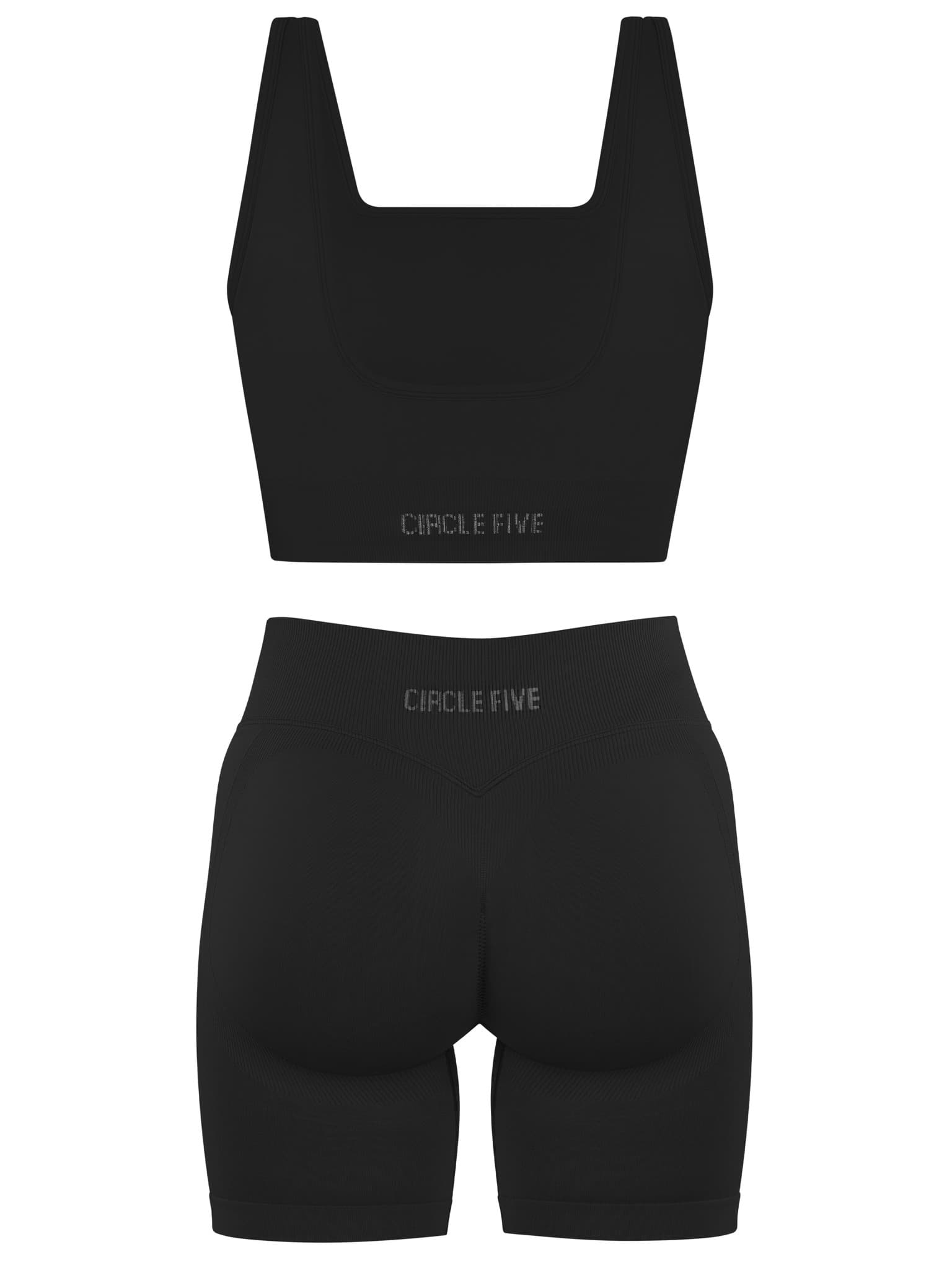 Die Shorts sitzen eng und bequem, mit Scrunch-Detail und Shaping-Effekt an der Seite für formende Unterstützung. Der Sport-BH bietet bügellosen Halt, herausnehmbare Cups und einen verschlussfreien Schnitt für maximalen Komfort beim Training.