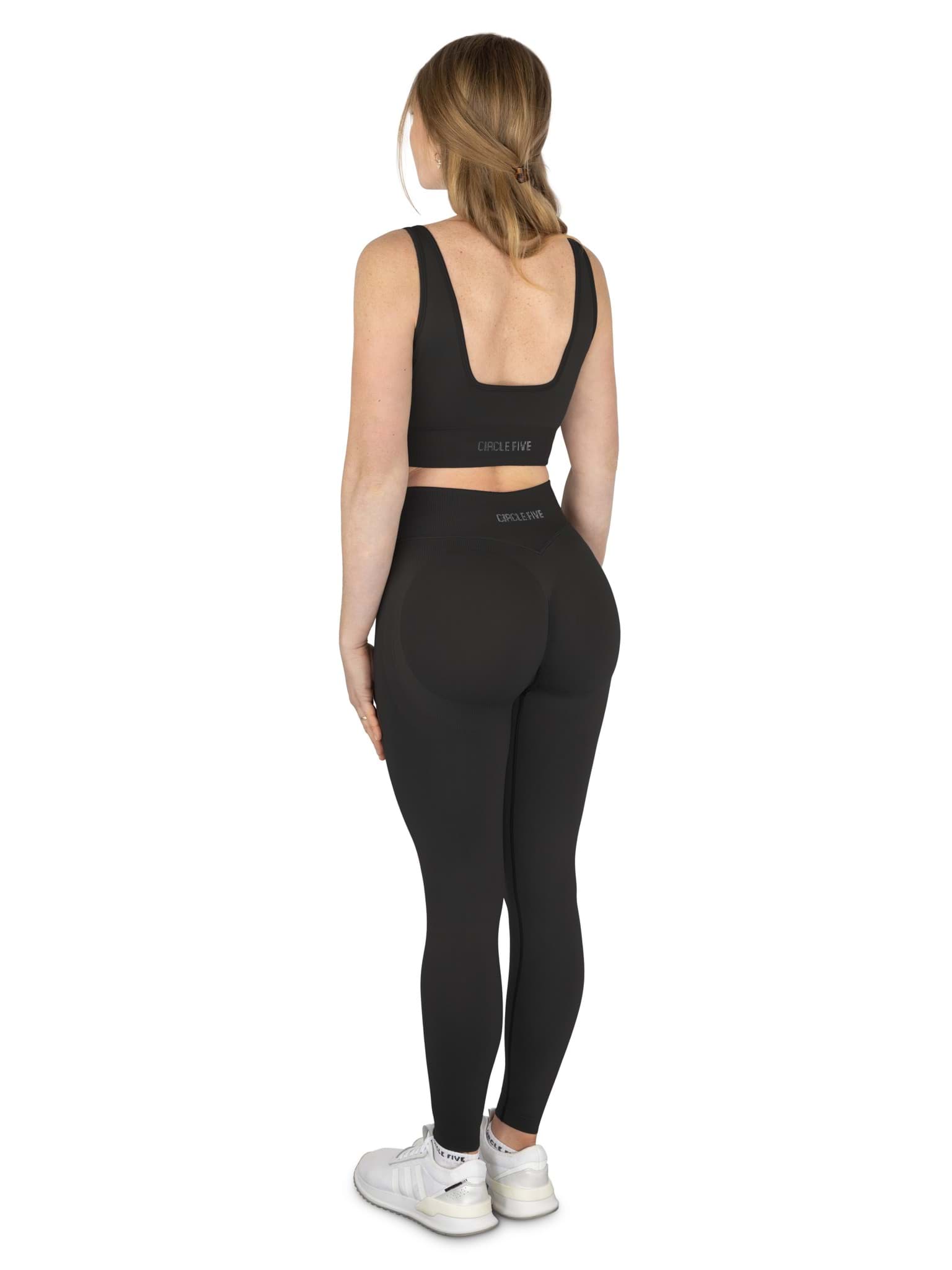 Die Push-Up Leggings mit Scrunch-Detail betonen deine Silhouette und sorgen für einen definierten Look. Der hohe Bund bietet sicheren Halt, während das elastische Material volle Bewegungsfreiheit garantiert. Der Sport-BH ist bügellos, mit herausnehmbaren Cups und bietet zuverlässigen Medium Support.