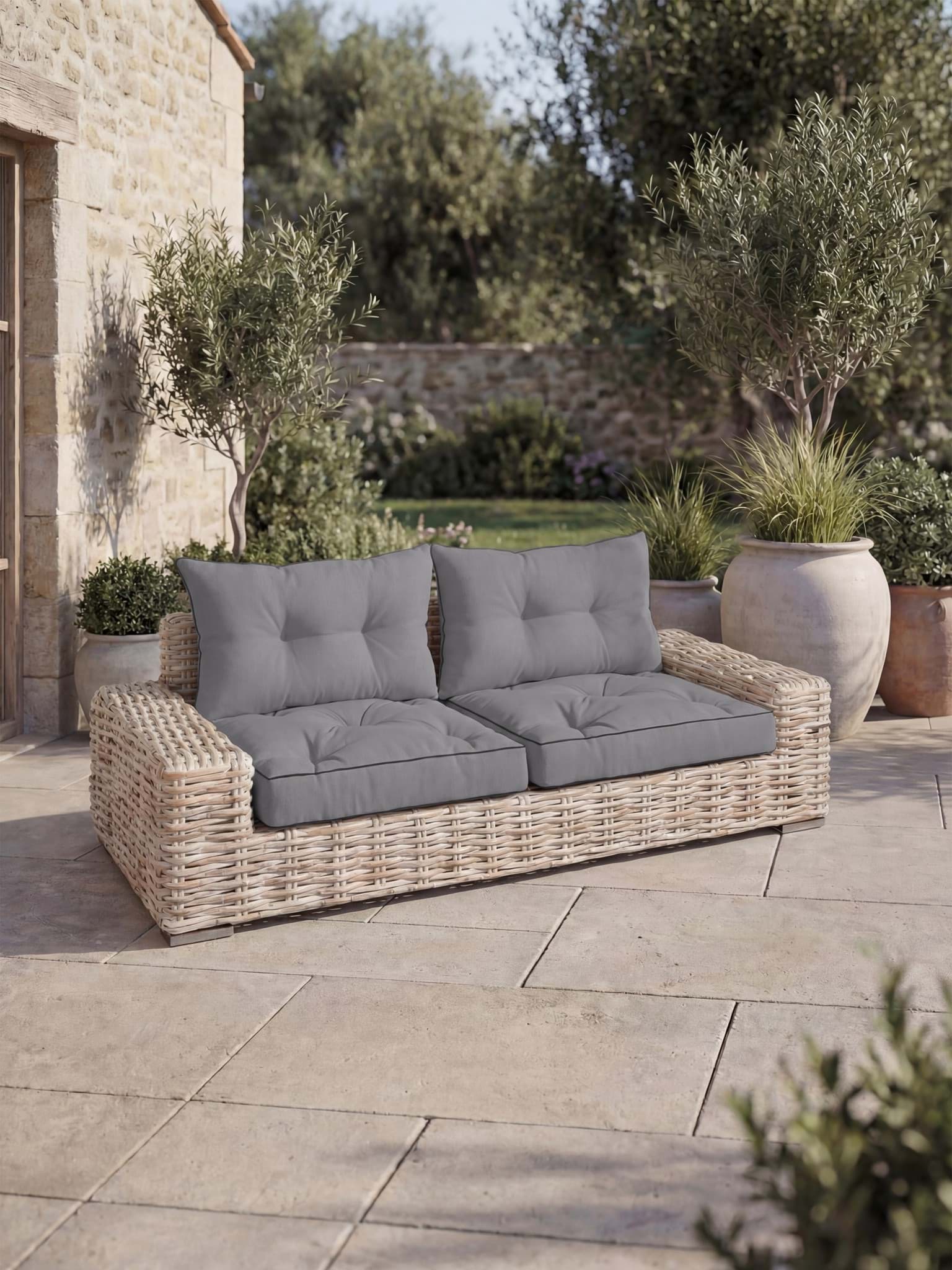 Genießen Sie maximalen Komfort mit unserem 2-teiligen Lounge-Kissen-Set bestehend aus dem Sitzkissen Cartagena und dem gesteppten Rückenkissen Cordoba. Das Set ist ideal geeignet für Gartensofa, Loungemöbel oder Palettenmöbel und sorgt für optimalen Sitz- und Rückenkomfort. Das Sitzkissen Cartagena (58 x 58 x 11 cm) bietet dank seiner extra dicken 11 cm Polsterung besonders hohen Sitzkomfort. Das Rückenkissen Cordoba (58 x 40 x 7 cm) unterstützt mit seiner 7 cm starken Polsterung angenehm den Rücken- und Lendenbereich. Dank der dekorativen Steppung bleibt die Füllung gleichmäßig verteilt und formstabil. Beide Kissen sind wasserabweisend, hautfreundlich und pflegeleicht – ideal für den Innen- und Außenbereich. Hergestellt in Europa – für kurze Transportwege und hohe Produktionsstandards.