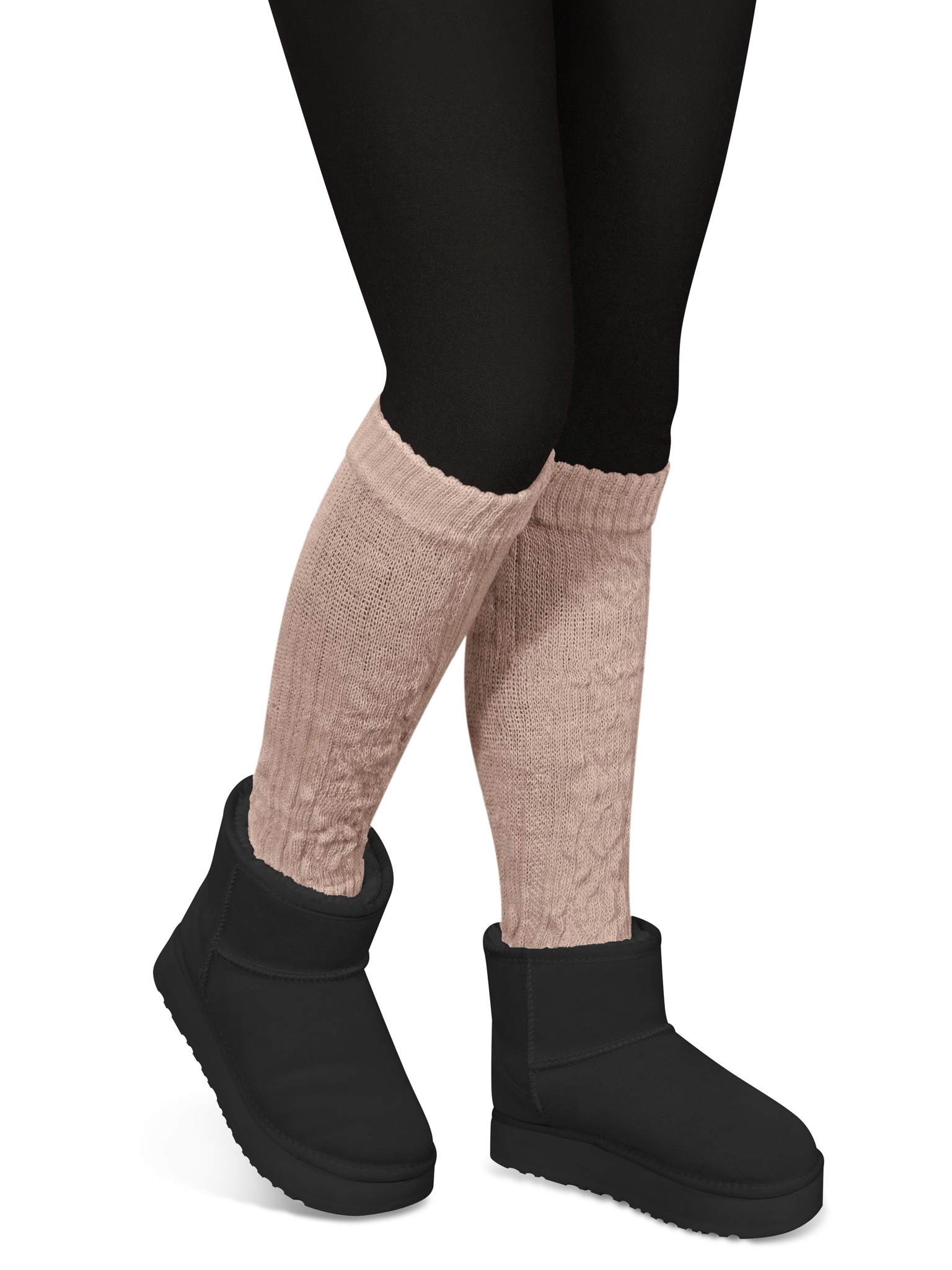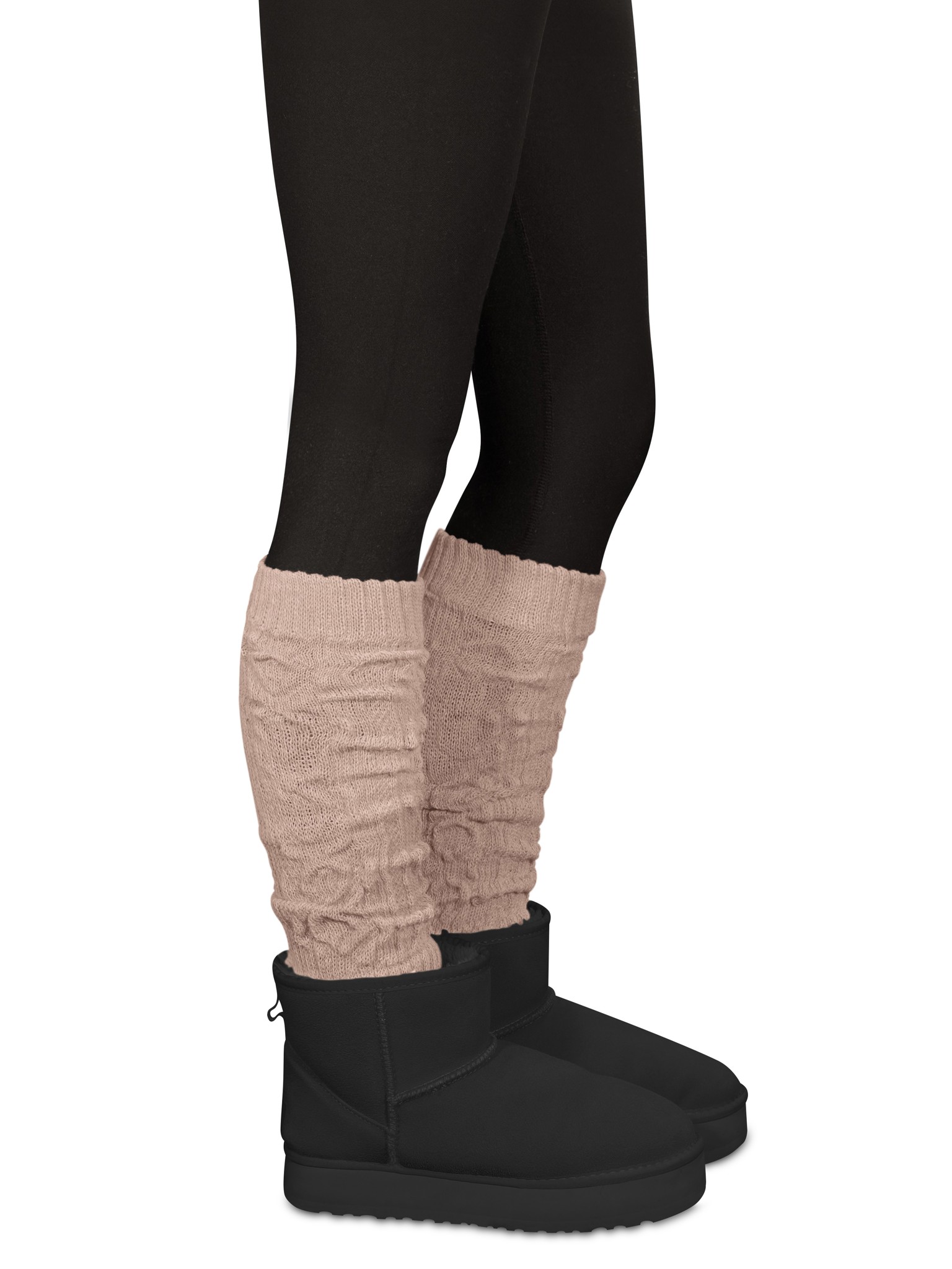 Die wärmenden Strickstulpen mit Schafwolle sehen toll aus, ganz gleich ob über einer blickdichten Strumpfhose oder engen Jeans. Gerne werden diese praktischen Modeaccessoires auch gerafft über Pumps getragen. Ein elastischer Saum am oberen und unterem Ende hält die Strickstulpen in der gewünschten Position.