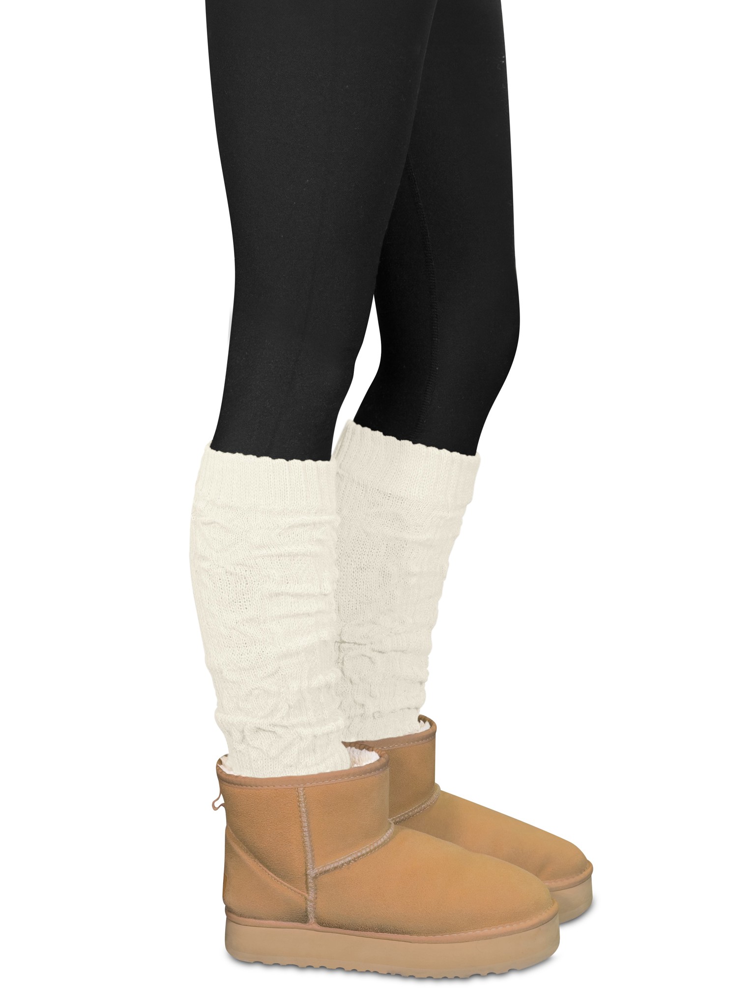 Die wärmenden Strickstulpen mit Schafwolle sehen toll aus, ganz gleich ob über einer blickdichten Strumpfhose oder engen Jeans. Gerne werden diese praktischen Modeaccessoires auch gerafft über Pumps getragen. Ein elastischer Saum am oberen und unterem Ende hält die Strickstulpen in der gewünschten Position.