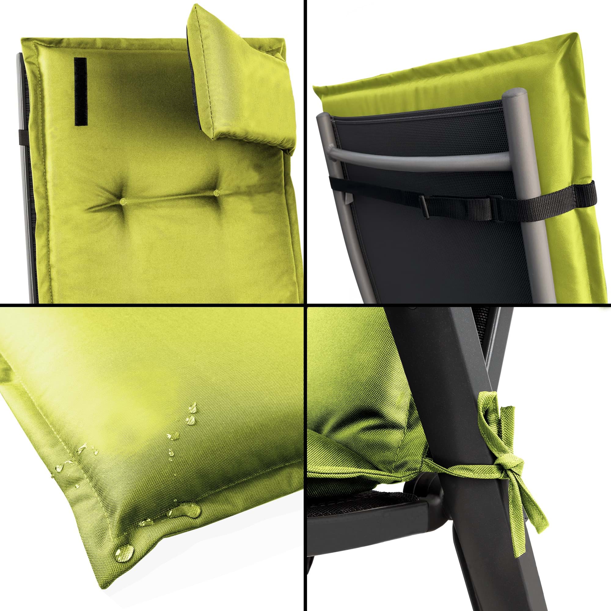 Entspannt den Sommer genießen mit unserem Hochlehner Palermo. Geeignet als Auflage für Ihren Hochlehner oder ihre Bank. Die Auflage verfügt über eine 5 cm dicke Polsterung und ein seperates, abnehmbares Kissen im Kopfbereich. Um lässtiges Verrutschen zu verhindern, ist die Gartenauflage mit vier Befestigungskordeln und einem Gummizug an der Rückseite ausgestattet. Somit ist ein optimaler Halt an allen gängigen Stühlen gewährleistet. Der Stoff ist wasserdicht und atmungsaktiv und nimmt auch nach längerem Sitzen wieder seine unsprüngliche Form an. Das hautfreundliche und strapazierfähige Polyester ermöglicht eine einfache Reinigung mit einem nassen Tuch. Ideal geeignete für den Innen- und Außenbereich. In Europa hergestellt für kurze Transportwege und hohe Produktionsstandards.