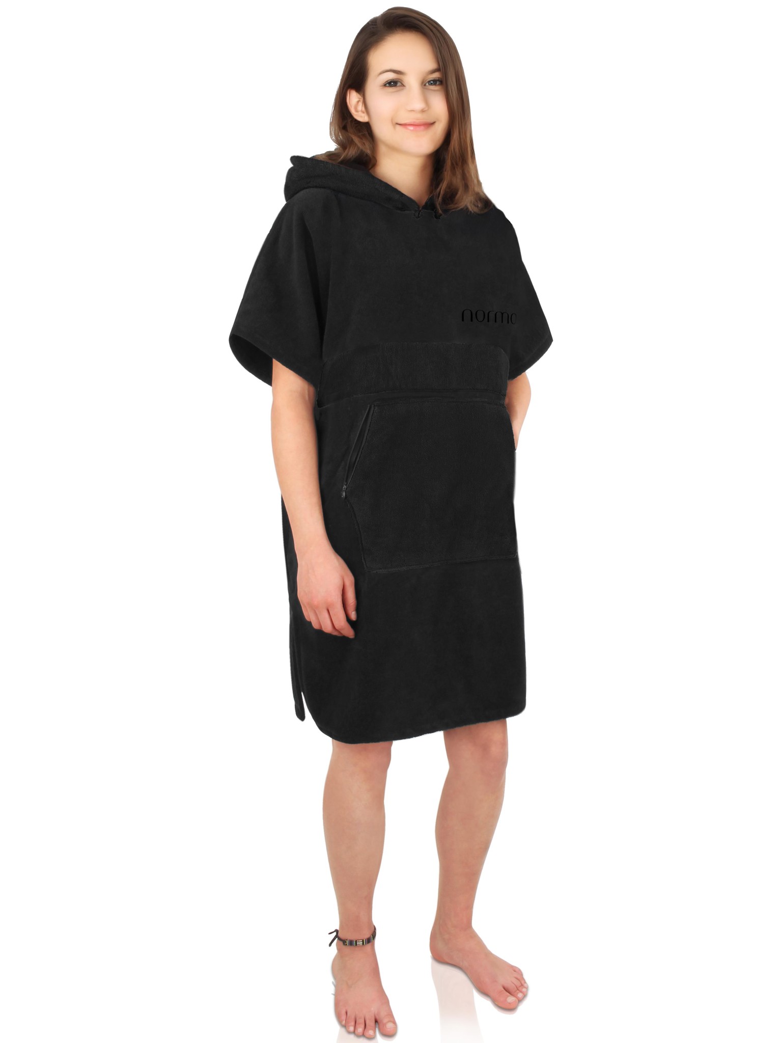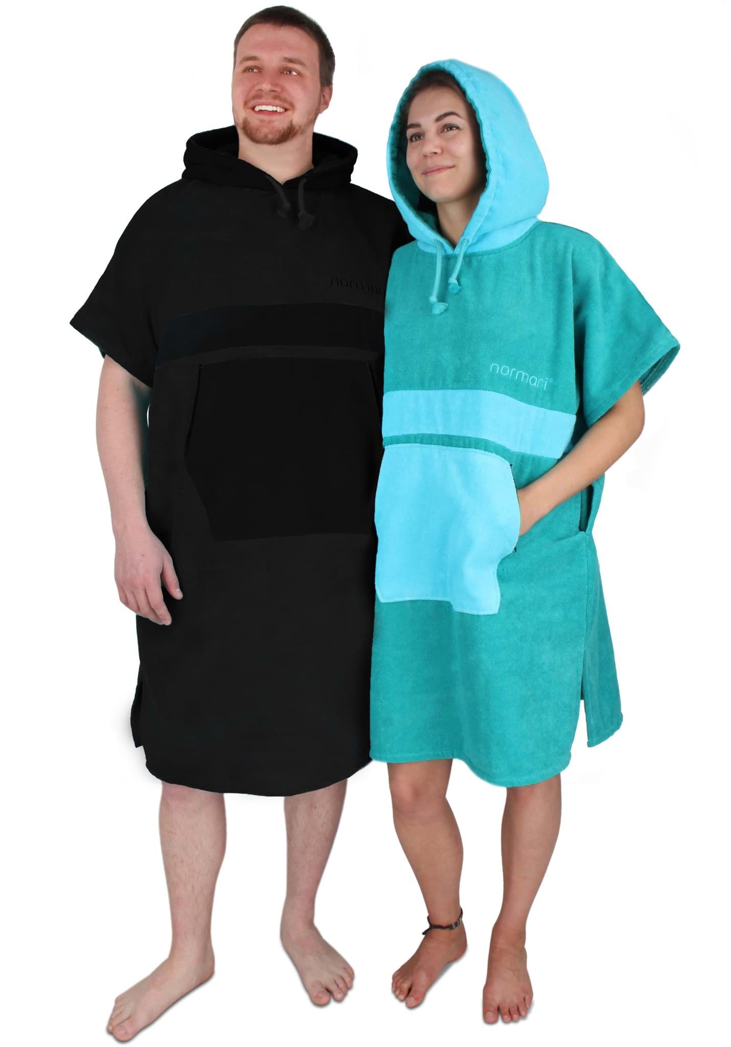 Surfer Poncho - Baumwoll Bademantel mit Kapuze Grau/Hellgrau