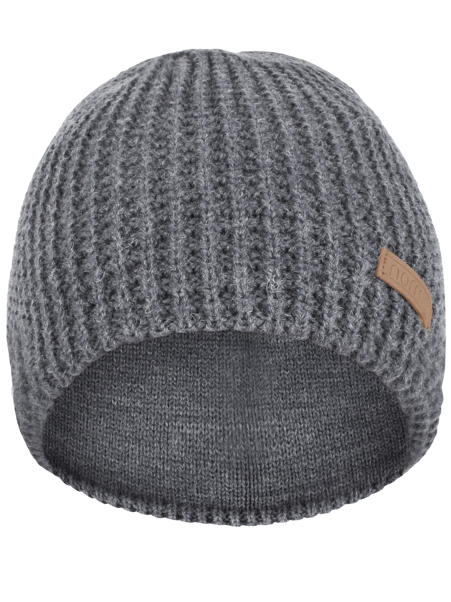 Die Wintermütze reicht bis über die Ohren, sodass diese vor den Wind und der Kälte geschützt sind. Der Lederpatch und die saubere Verarbeitung garantieren einen tollen Look.
